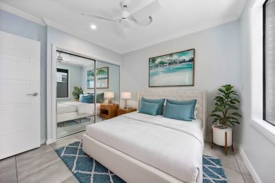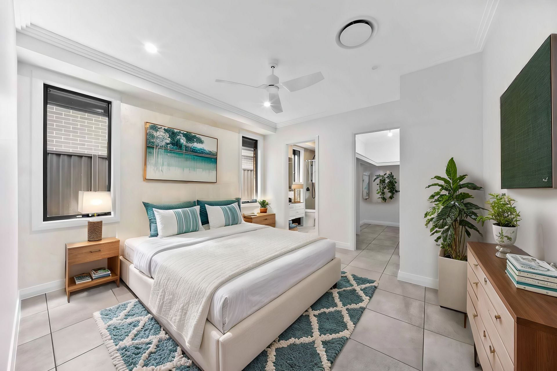 Each of the four generous bedrooms is designed for comfort, complete with built-in wardrobes and ceiling fans. The master suite is a private retreat, featuring a spacious walk-in robe and a chic en-suite bathroom.