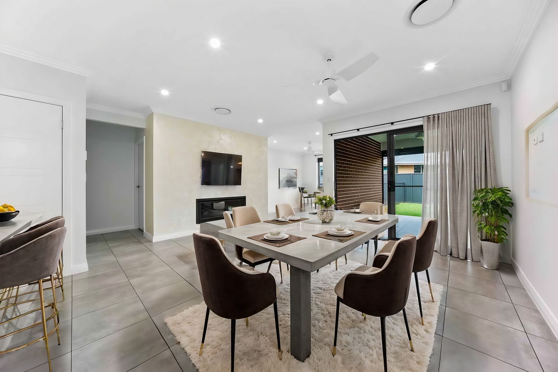Step into the heart of the home, where the open-plan living areas are designed for easy living and entertaining. The separate lounge and dining rooms flow seamlessly, with sleek tile flooring throughout that adds to the home’s contemporary elegance.